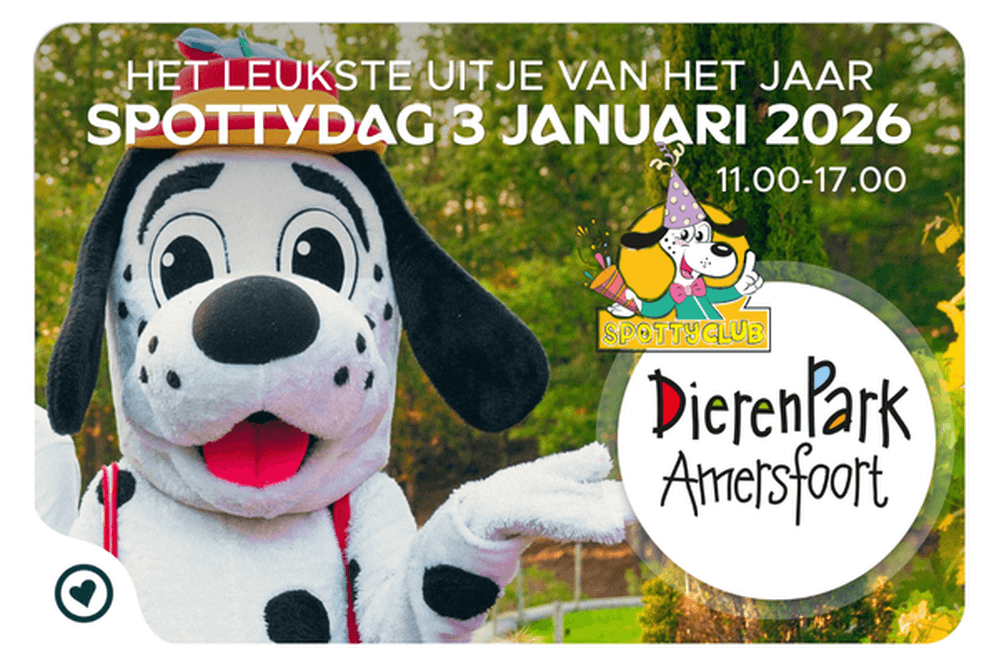 Spotty Day is back! On January 3, 2025, Spotty will travel to the Netherlands again to see all his friends and dance, jump, and sing together. He can't wait, because Spotty has something special in mind for this edition. Spotty loves animals and would like to celebrate this event with you at Amersfoort Zoo. You don't want to miss it, do you? We're going to play all kinds of games, go on a treasure hunt in the zoo, and of course dance at the Spotty Disco. Because Spotty Day is always extremely popular and we don't want to disappoint anyone by turning people away, this year we are asking for a small contribution of €10 per ticket when you register. The great thing is...! you will get this amount back in full as a discount on your next vacation with Vacanze col cuore. Register quickly and get your ticket, because once it's full, it's full!